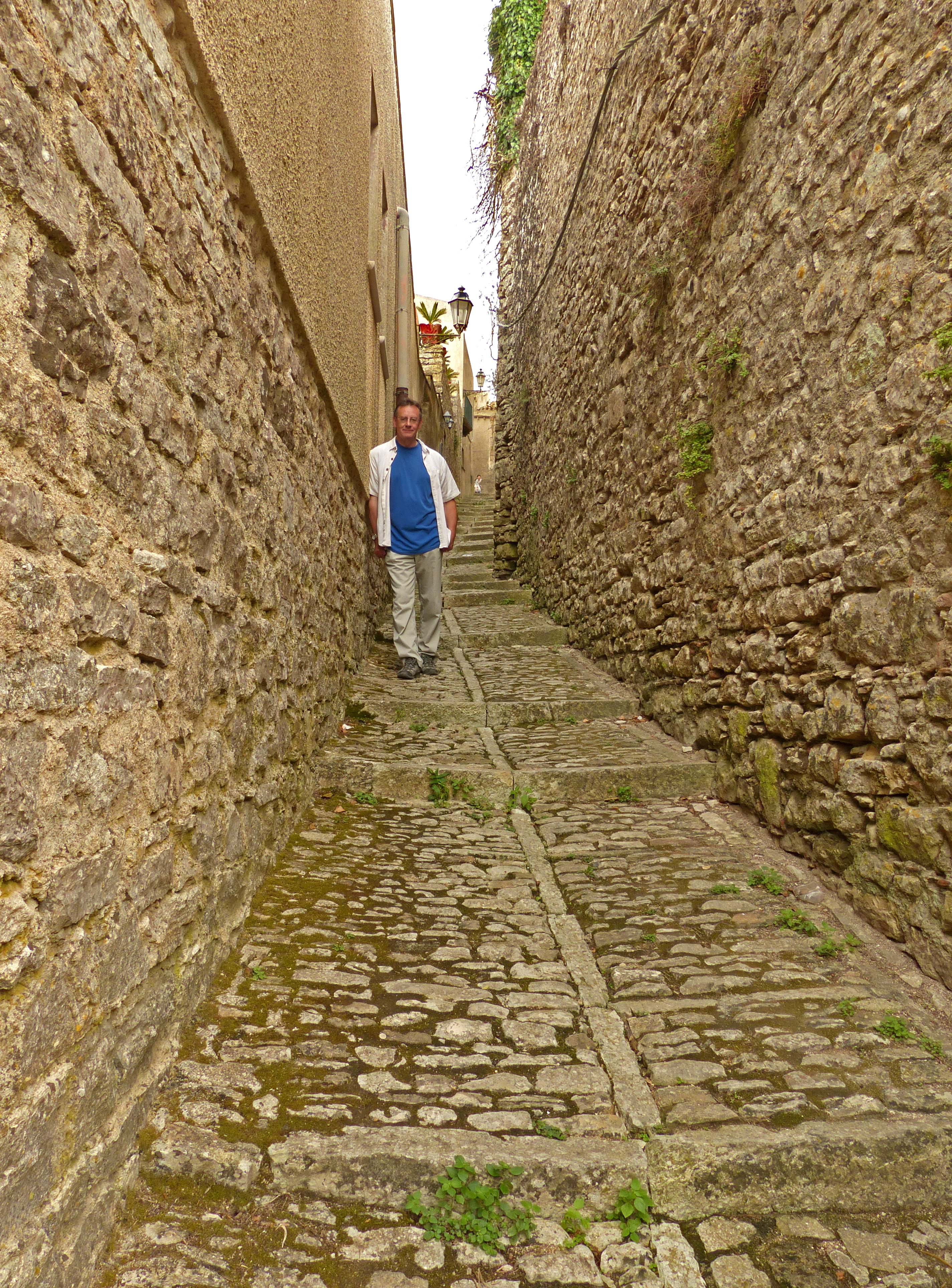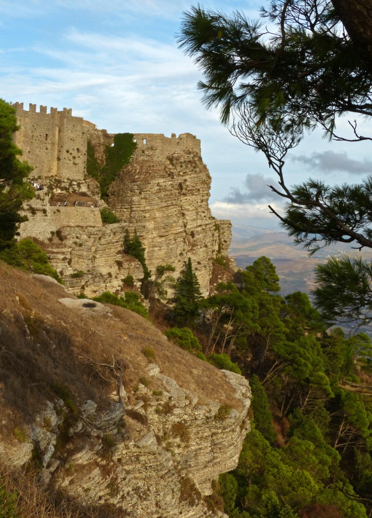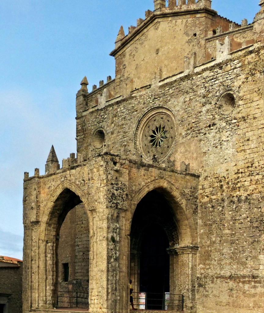 Overlooking Trapani is Eriche, which is situated on an isolated mountain overlooking the town and the Mediterranean. It is a cluster of medieval buildings and narrow stone streets that can be accessed from Trapani by cable car. The views from the medieval walls are spectacular in every direction, with the Egadi Islands to the west and the distinctive conical shape of Monte Cofano to the east.