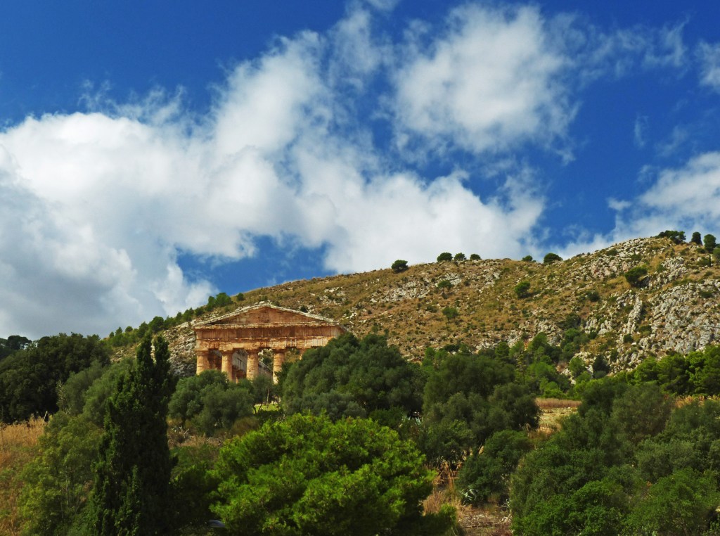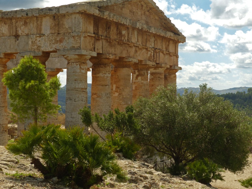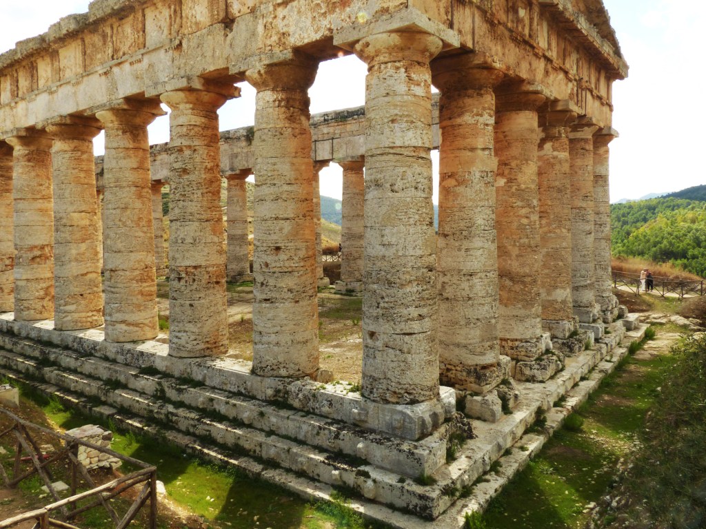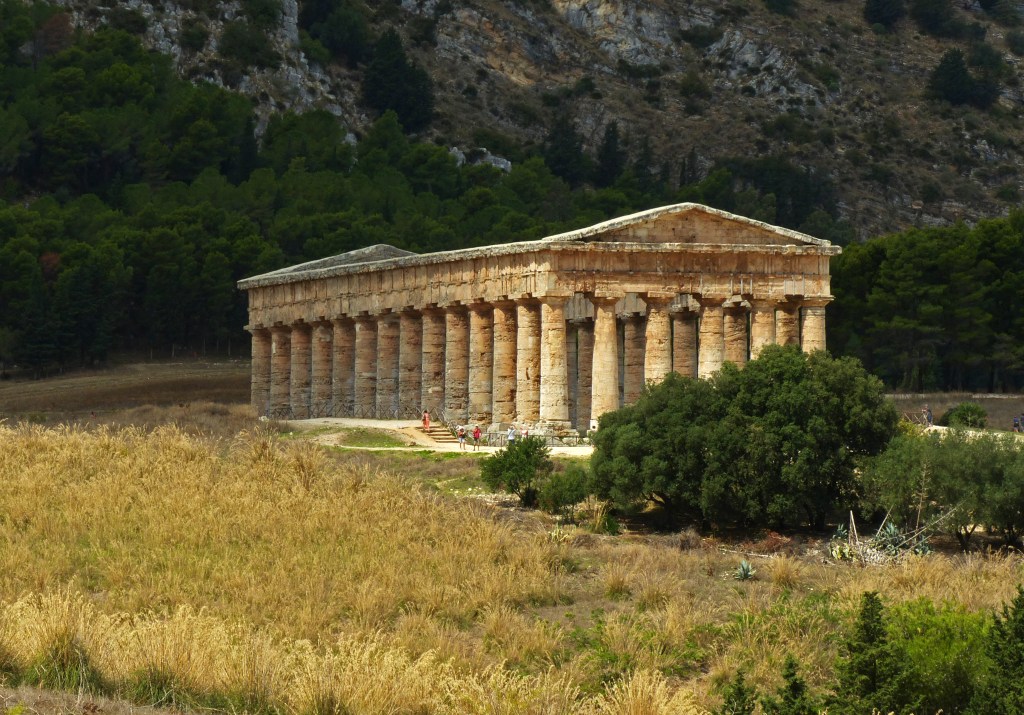 Inland from Trapani is Segesta, which is the site of one of the best preserved ancient Greek temples in Sicily. It is on a hill overlooked by cliffs with a deep ravine hidden behind it.