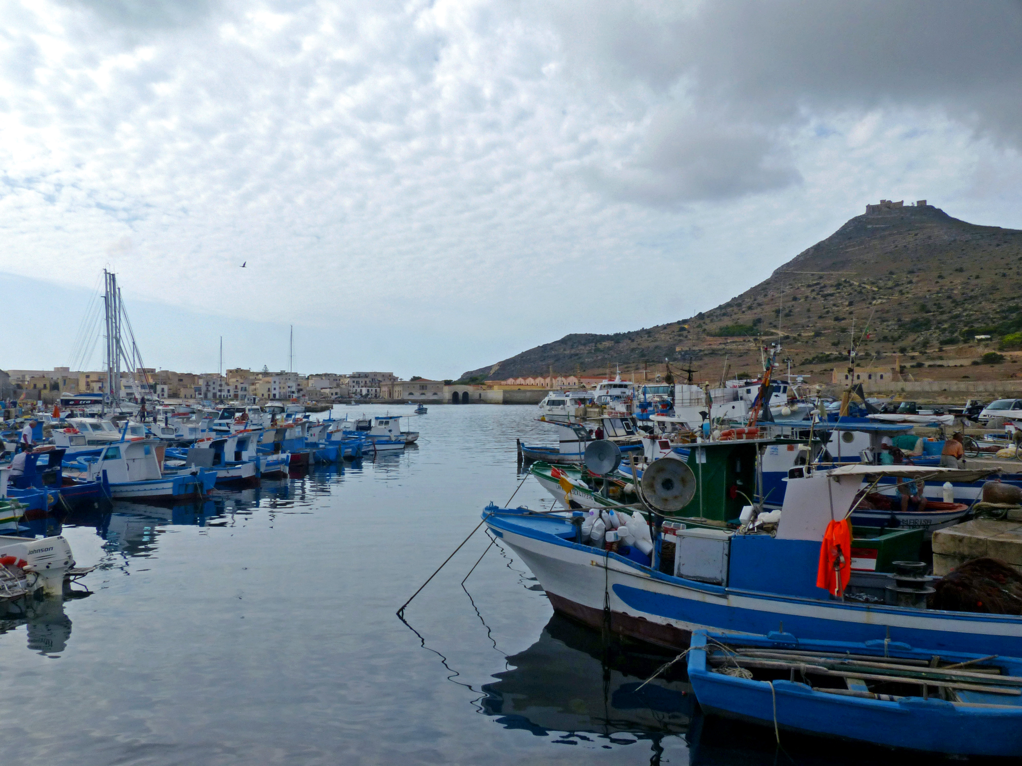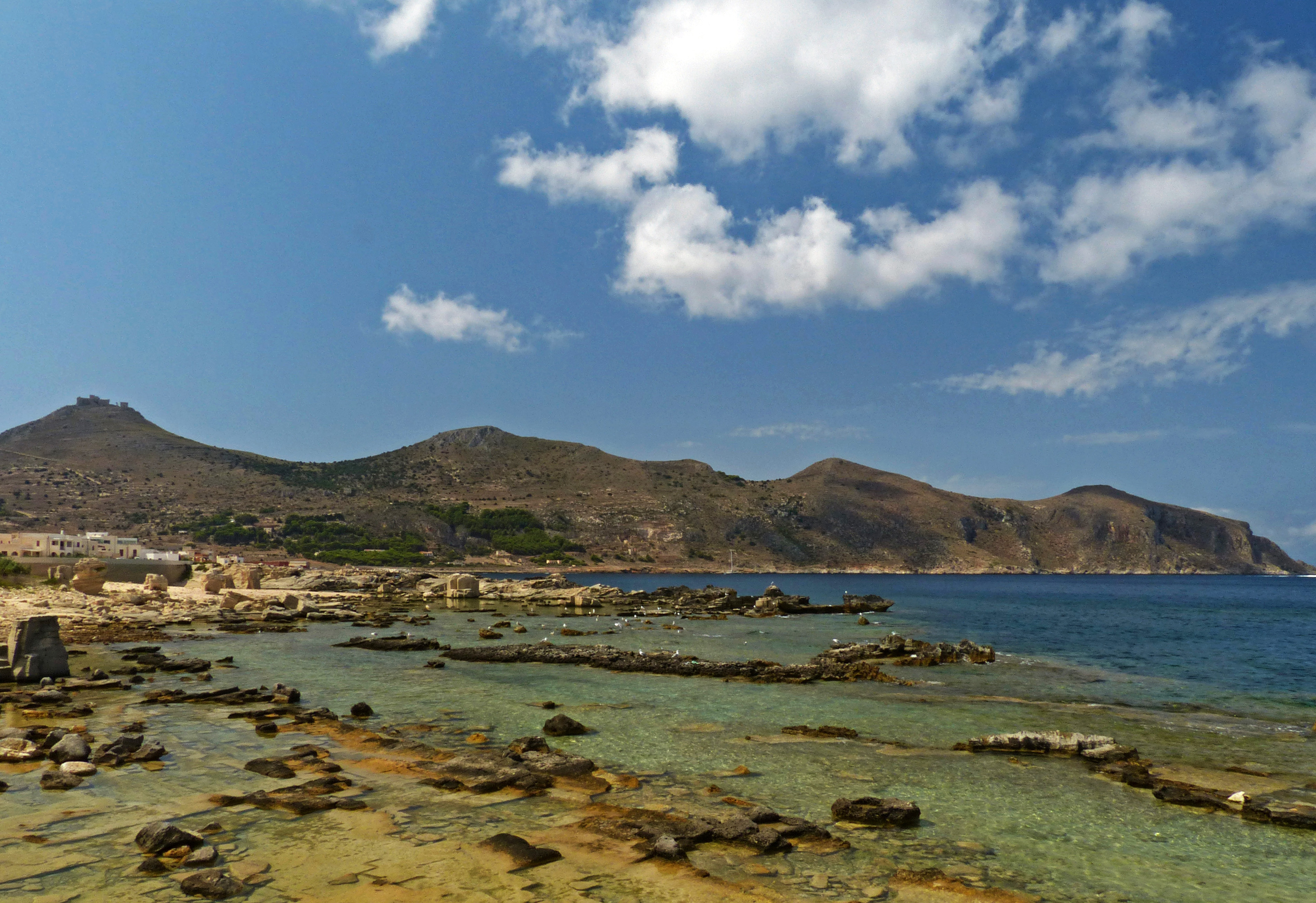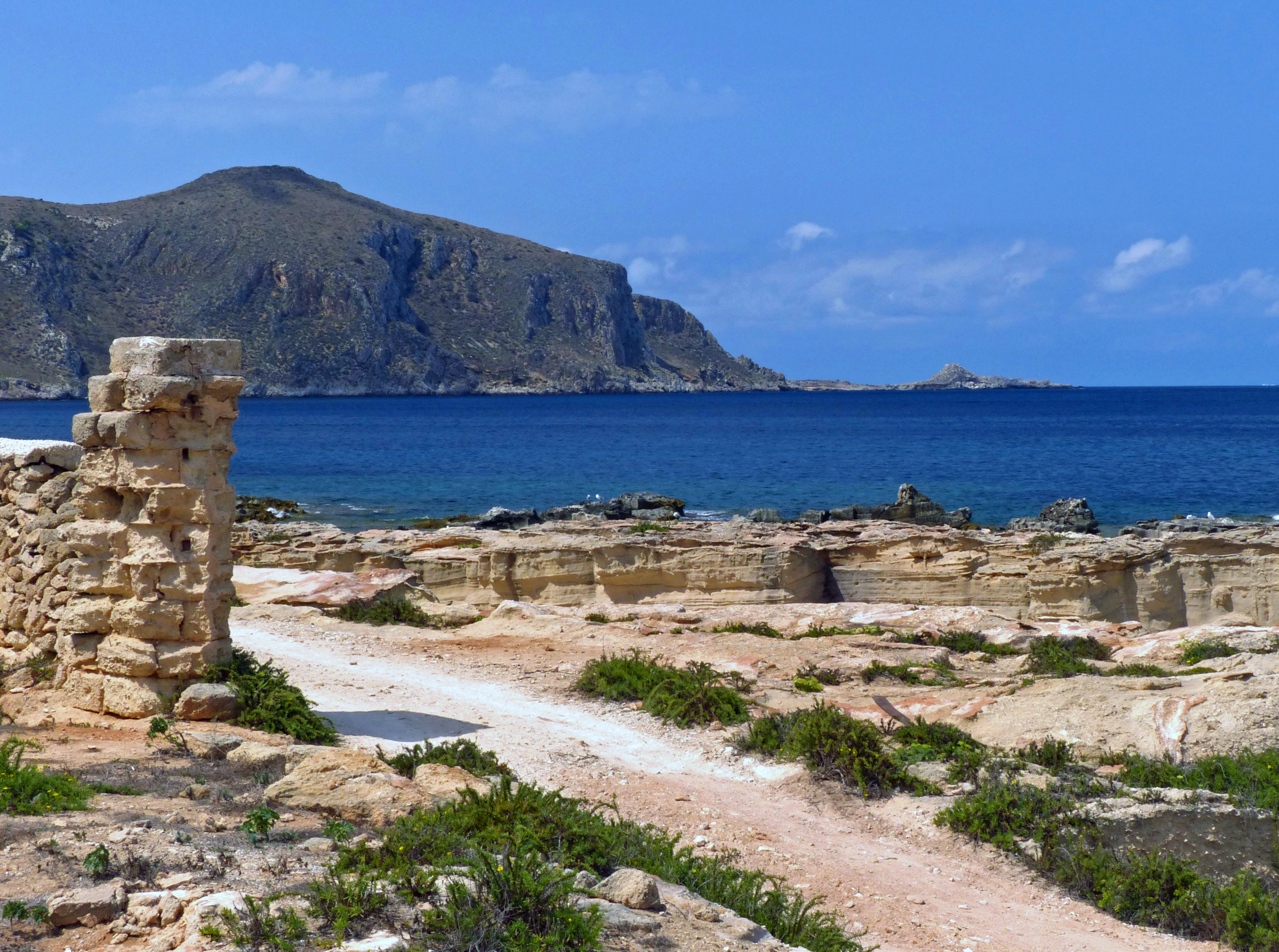The rugged Egadi Islands are scattered just offshore west of Trapani and are worth a visit for their rocky limestone profiles surrounded by a deep blue sea, which changes to golden at sunset when viewed from Trapani or Eriche.