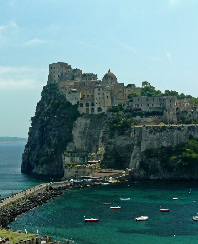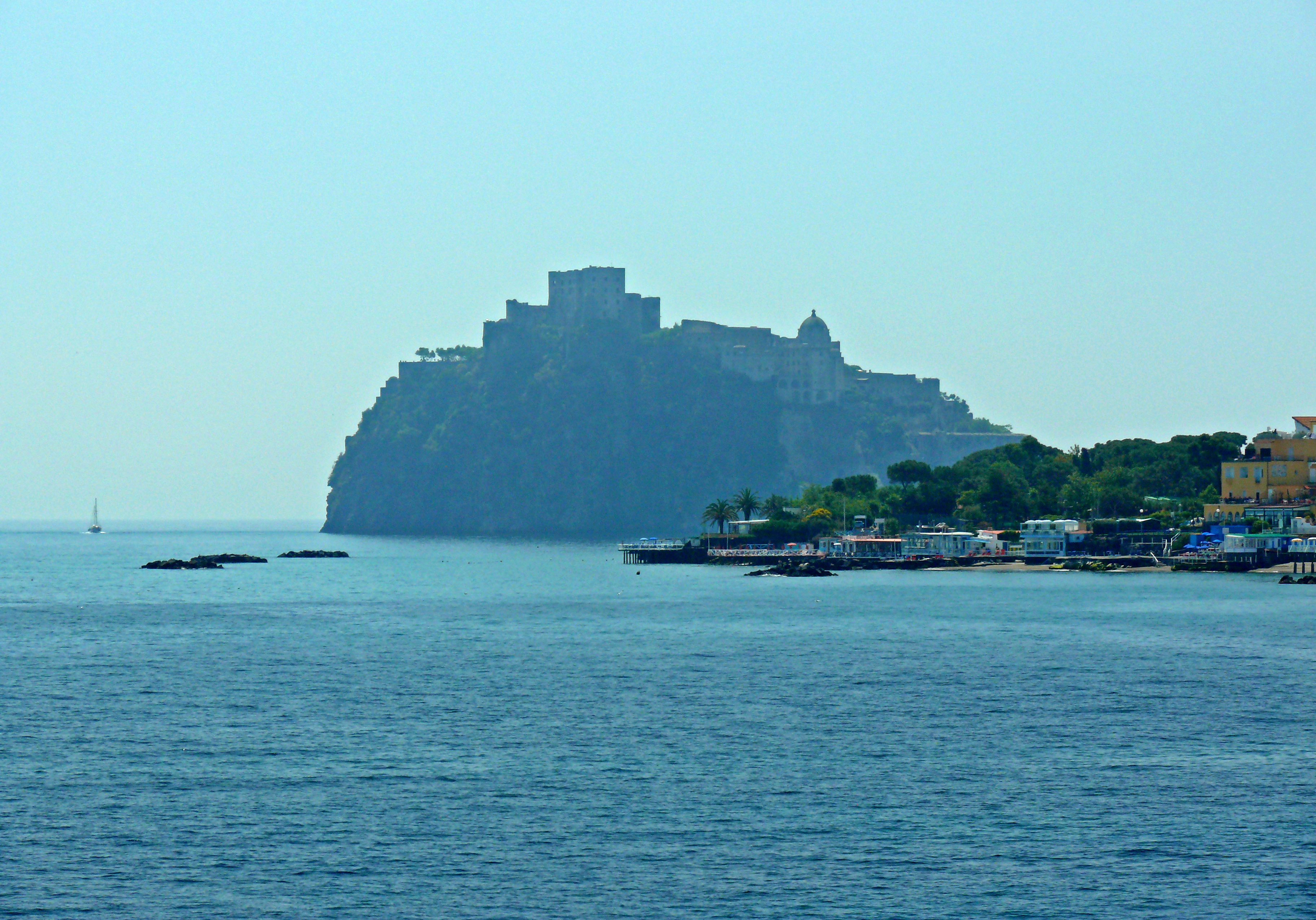 The Island of Ischia is the largest island in the Bay of Naples. It is quite different from Capri, which is smaller, more rugged and busier. Capri is made up of limestone, while Ischia is a volcanic island and part of a small archipelago which includes Procida. Attached to Ischia by a causeway is the Castello Aragonese, built on a volcanic pug.