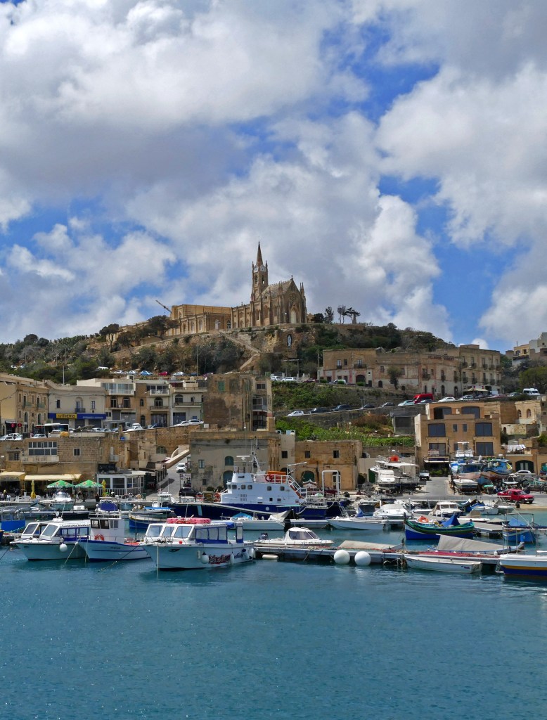 From the Grand Harbour is a fast ferry to the quieter island of Gozo. It docks at Mgarr Harbour from where there is a straight road up to Victoria/Rabat. Here, the cathedral is set on a high point surrounded by fortifications, which afford fine views around the small island.