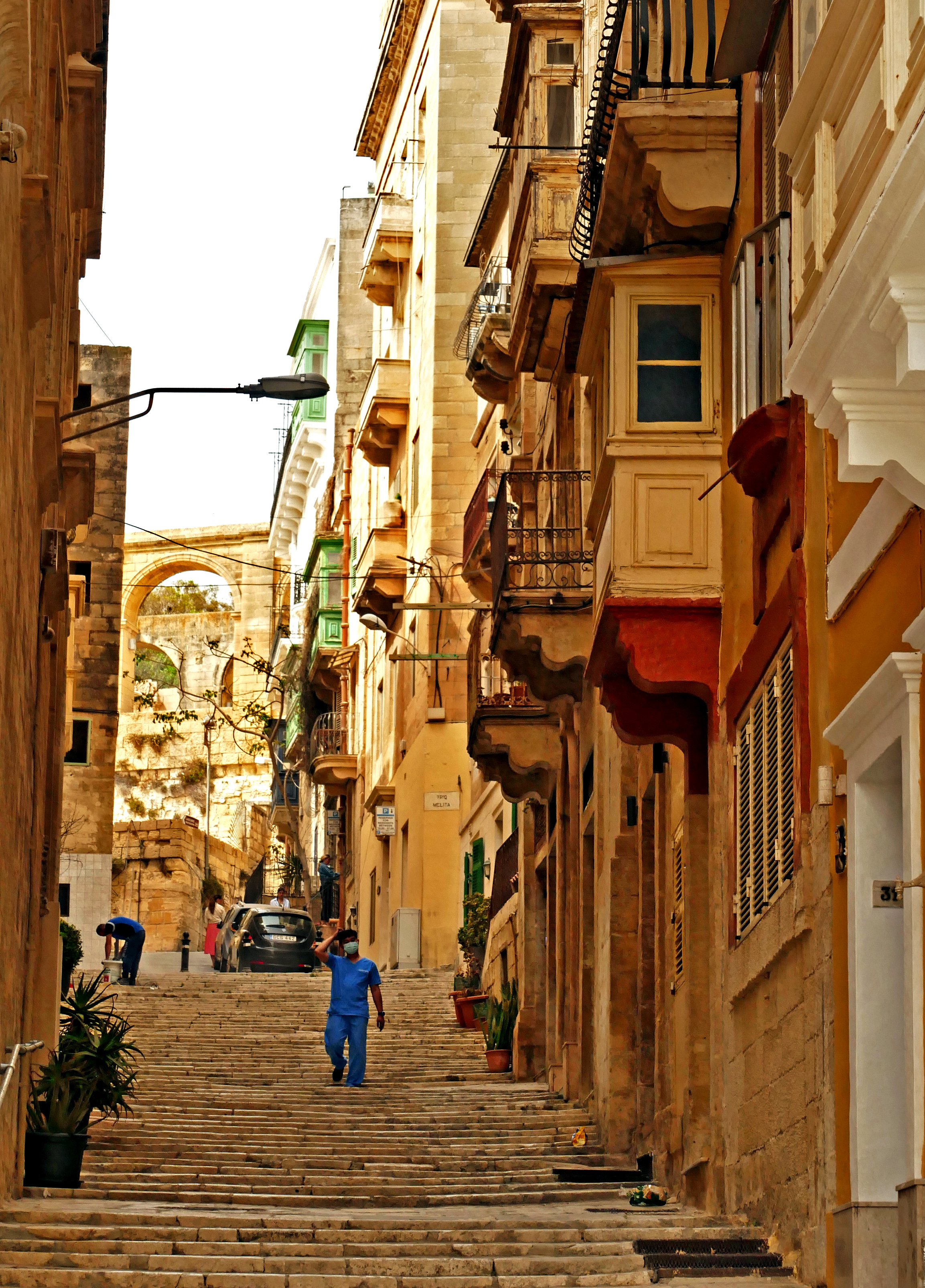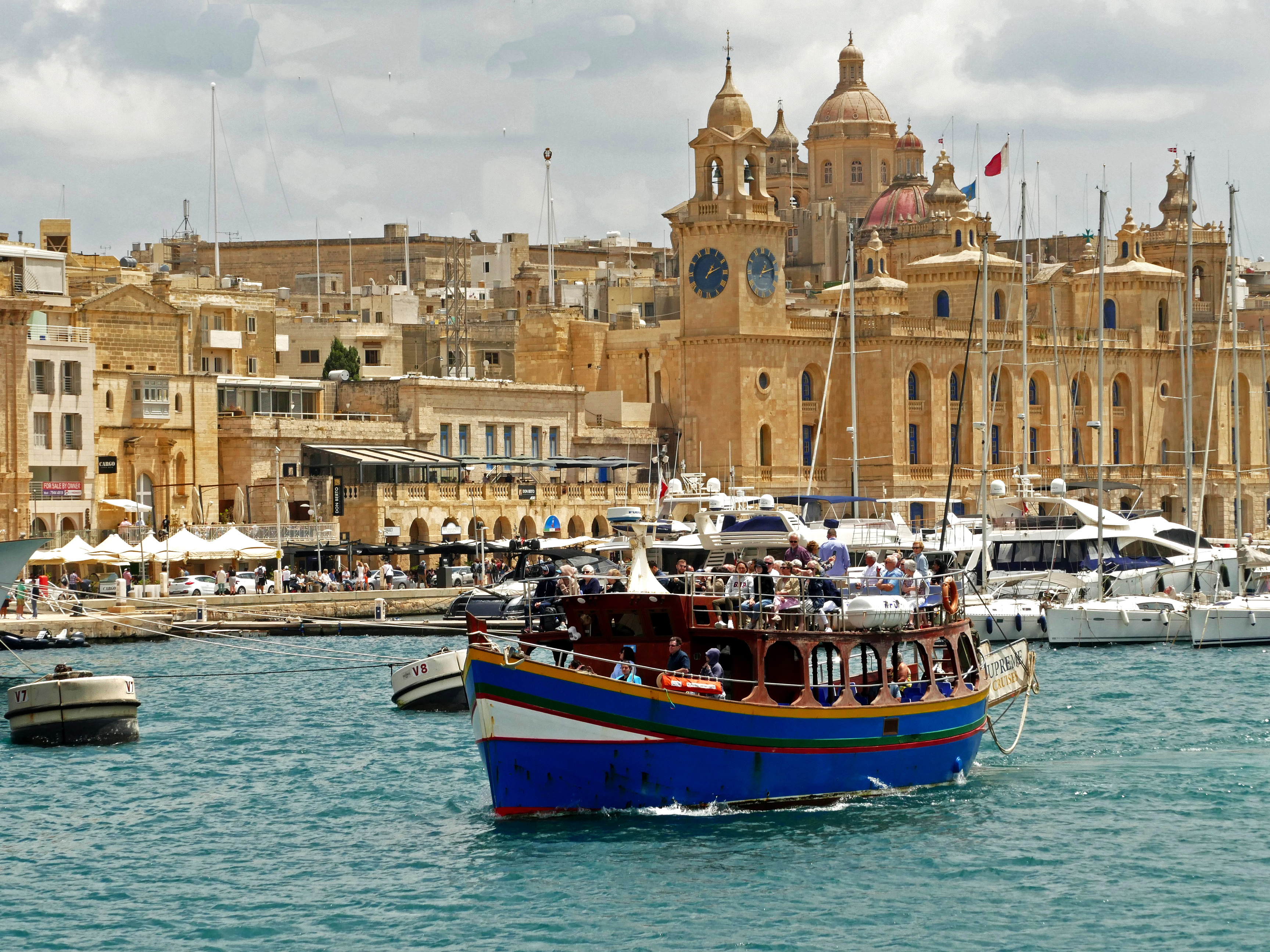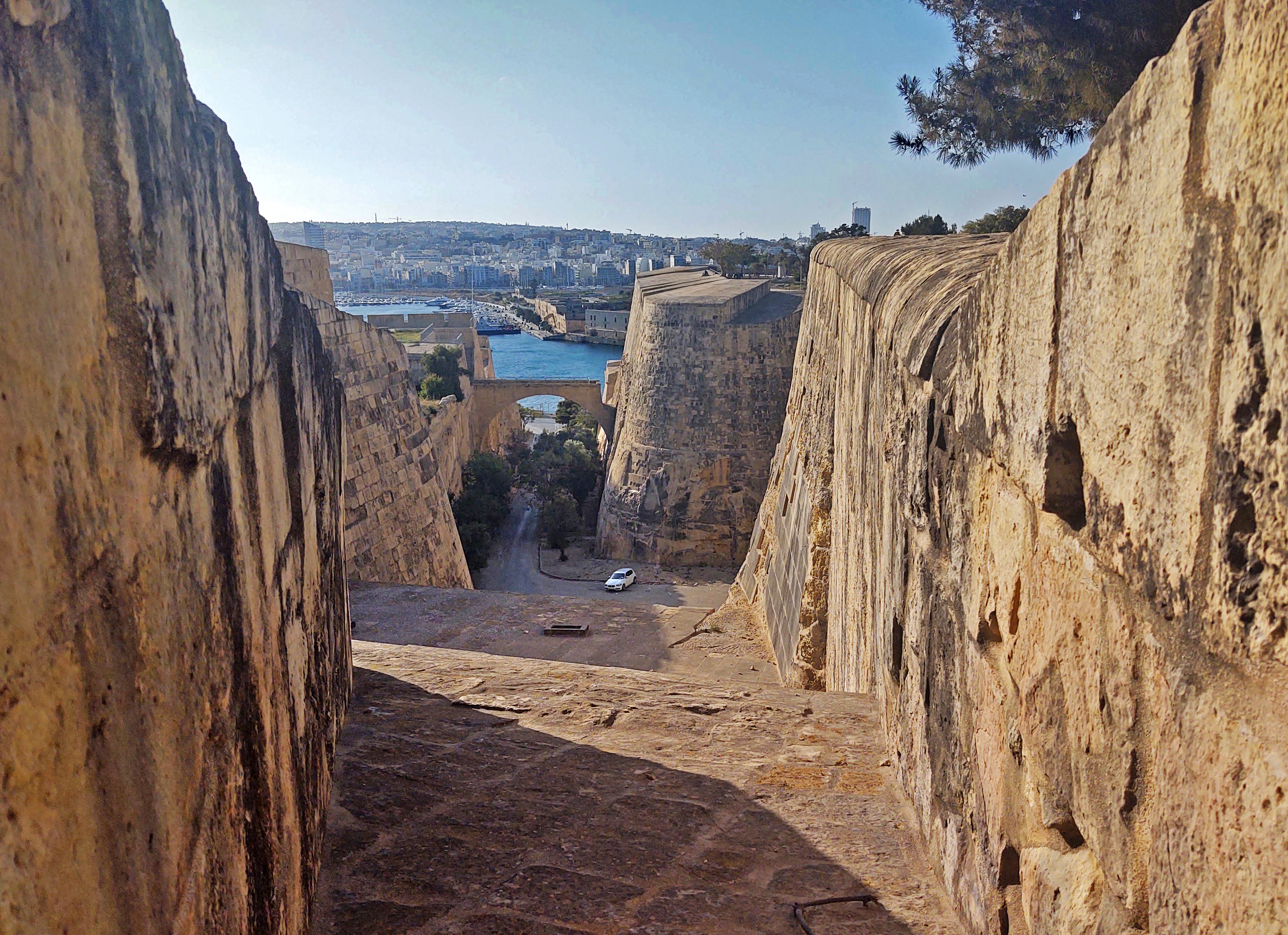 Although Malta is not hilly, Valletta was built on a narrow ridge overlooking the Grand Harbour. Together, this allowed for the perfect site to build a heavily fortified port across a deep water inlet strategically positioned in the centre of the Mediterranean. It also means that the roads within the fortifications on both sides of the harbour are narrow and hilly but overlooked by many fine historic buildings. In Valletta is the lavish St John’s Cathedral, The domed church of St Augustines and the extensive Grand Master’s Palace. Across the harbour in Birgu, there is St Lawrence catholic church, the Inquisitor’s Palace and casino. Across a narrow inlet cluttered with yachts and launches is Senglea with its basilica, where views down the narrow, steep streets lead down to the water and offer fine views across the water back to Birgu.