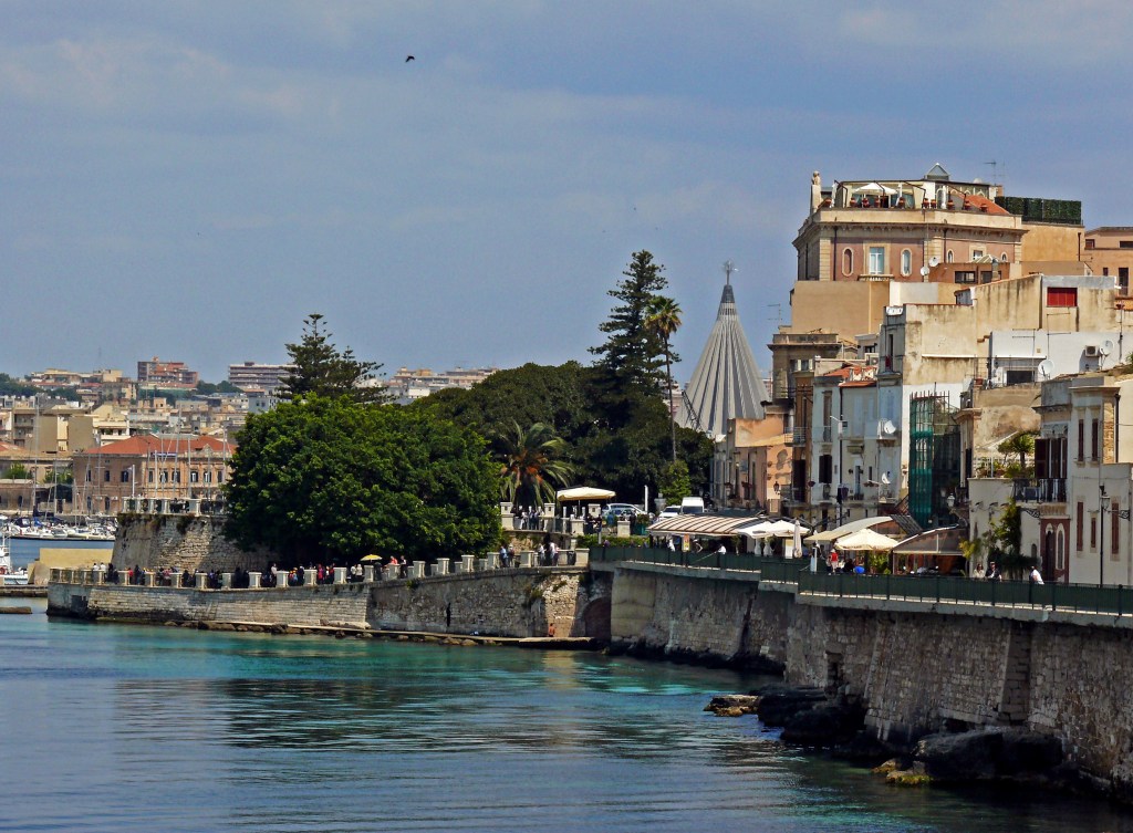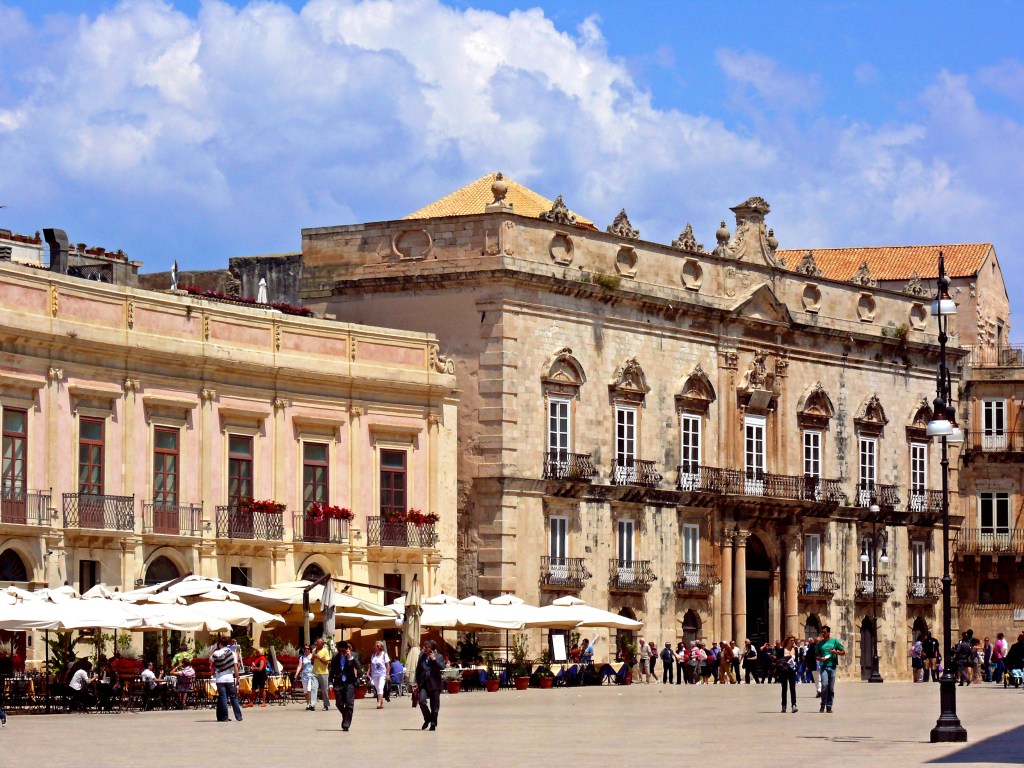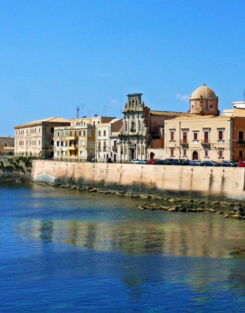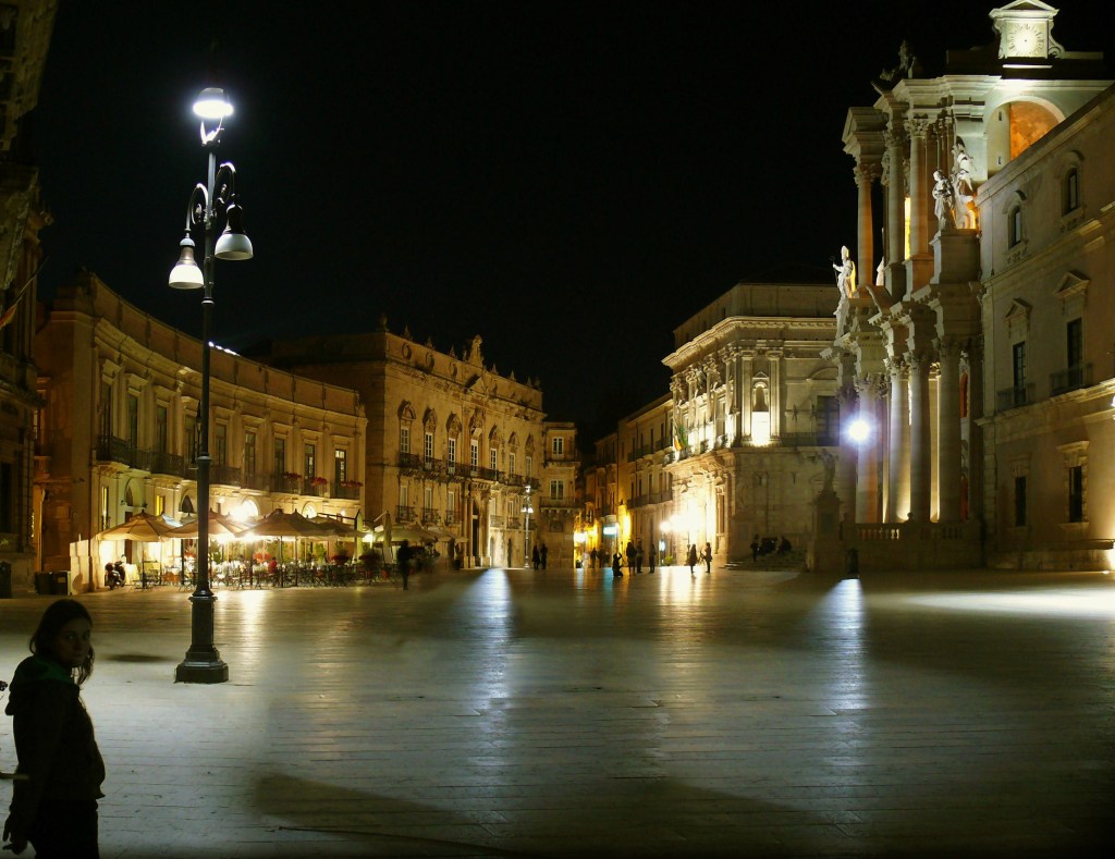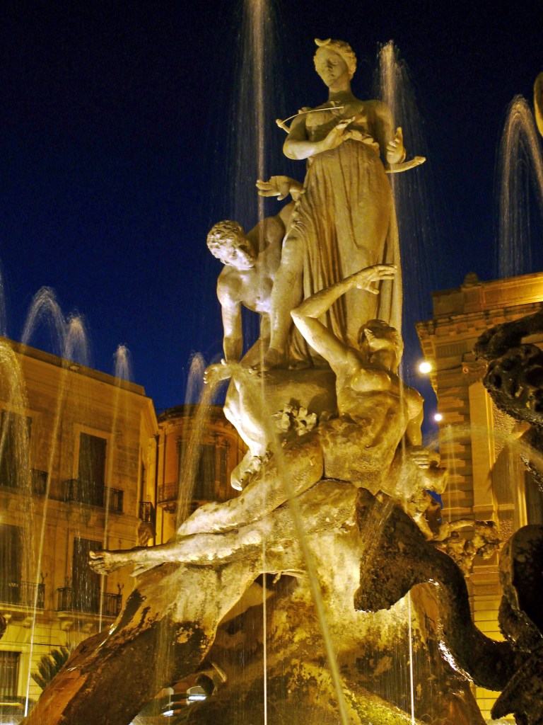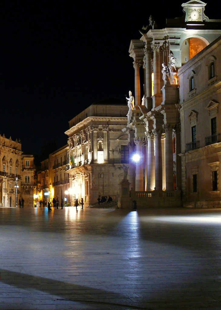 On the far side of Sicily, on its eastern coast, stands the city of Syracuse with its long and illustrious past. The historic quarter is on the island of Ortygia, across a narrow bridge and centred around the Piazza del Duomo overlooked by the cathedral, which started life as a classical Greek temple. Another focal point is the Piazza Archimede, which is particularly attractive at night when the Fontana di Diana is lit up.