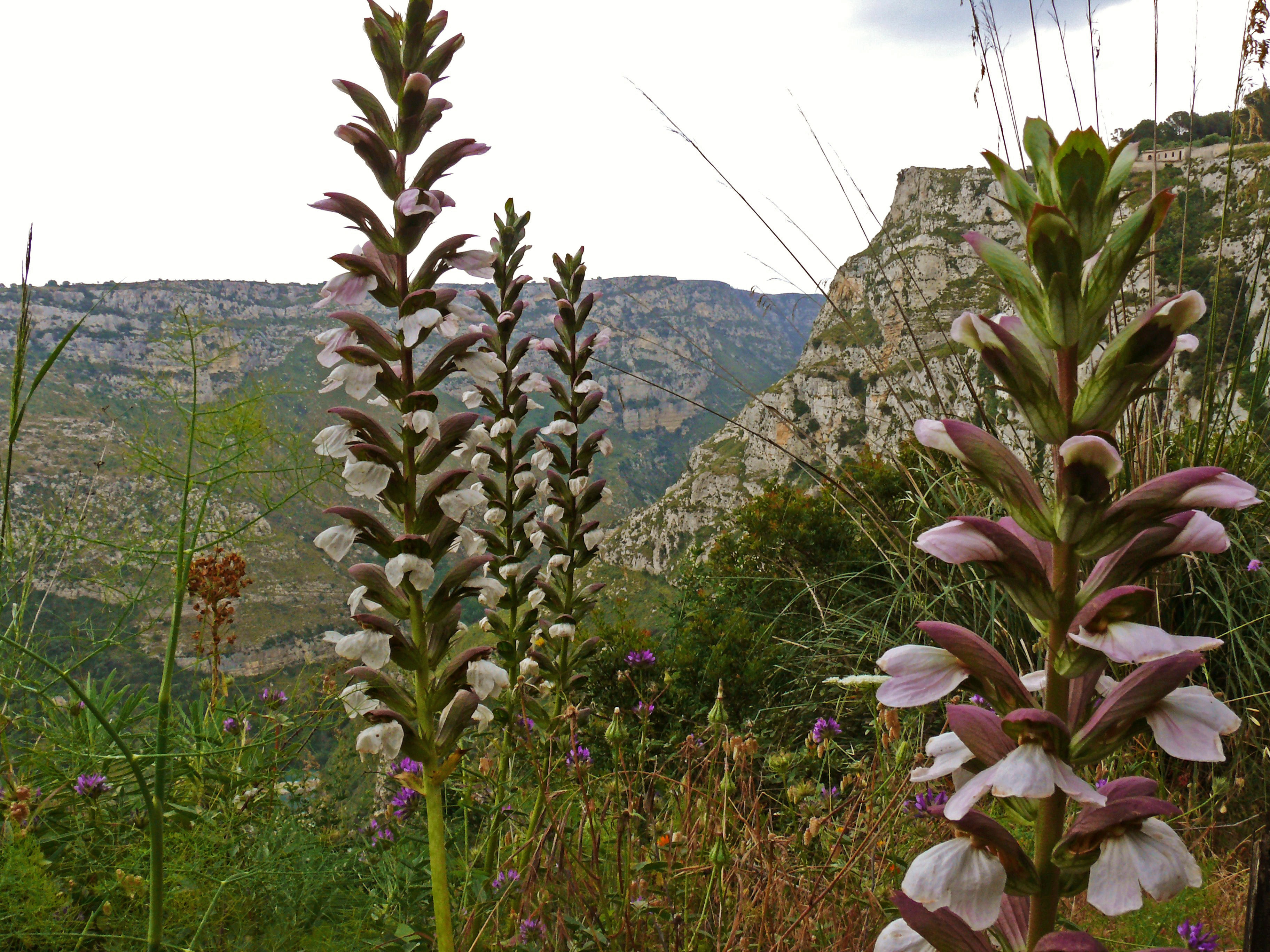 Images of the rugged local landscape. Showing Eriche in the evening light and inside the untamed ravine behind the temple of Segesta.